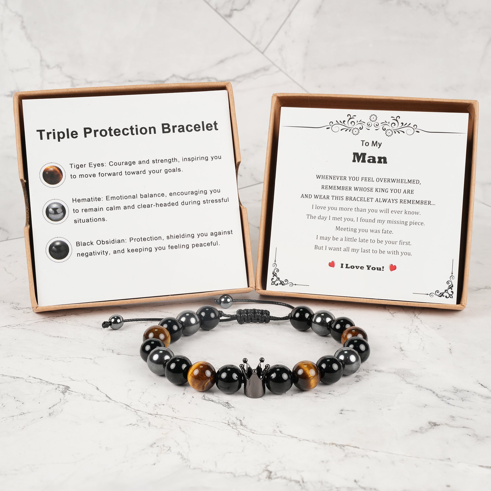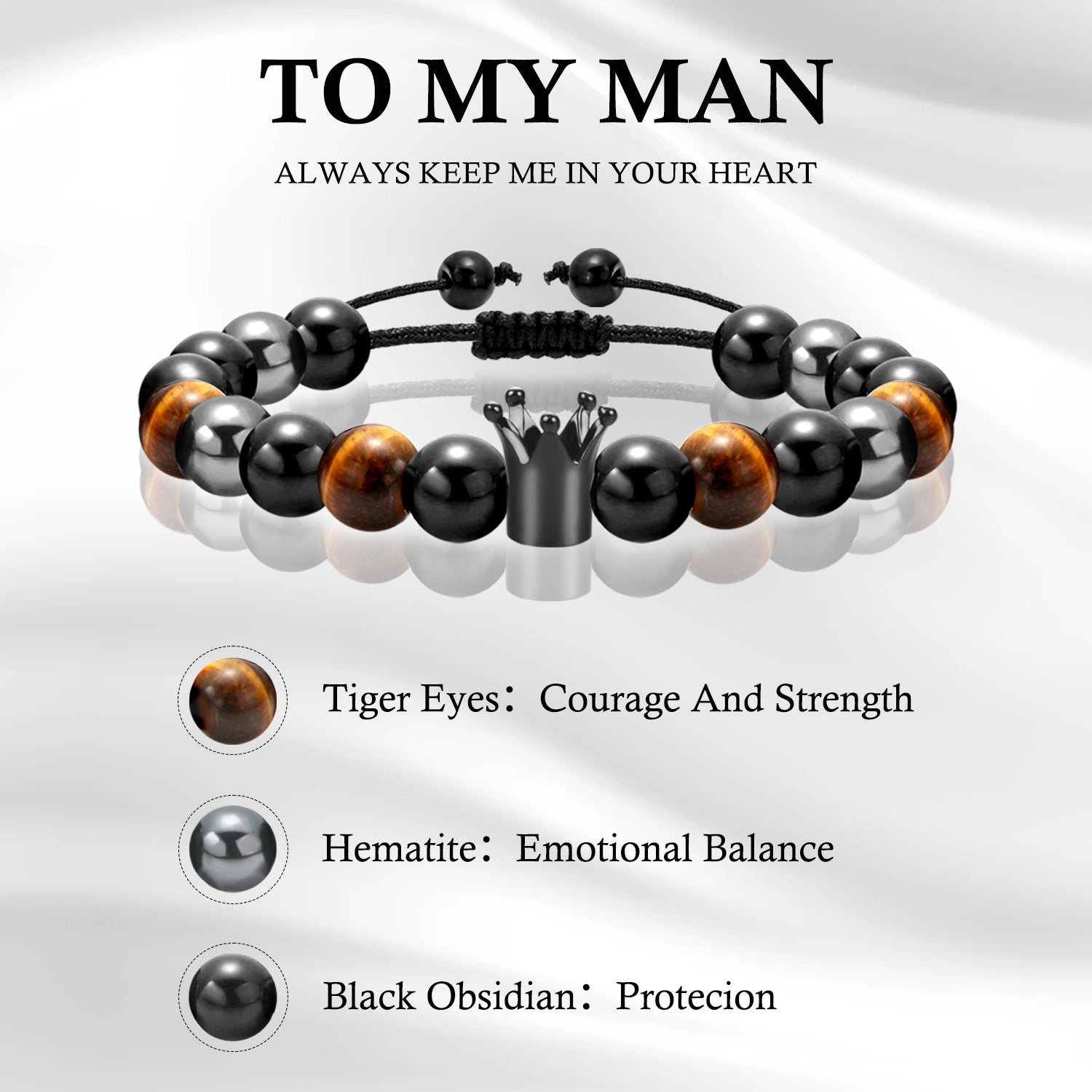 this bracelet features the crown at its center—a bold reminder that he will always be your king. This bracelet carries a simple truth: You're my person, my rock, my everything.