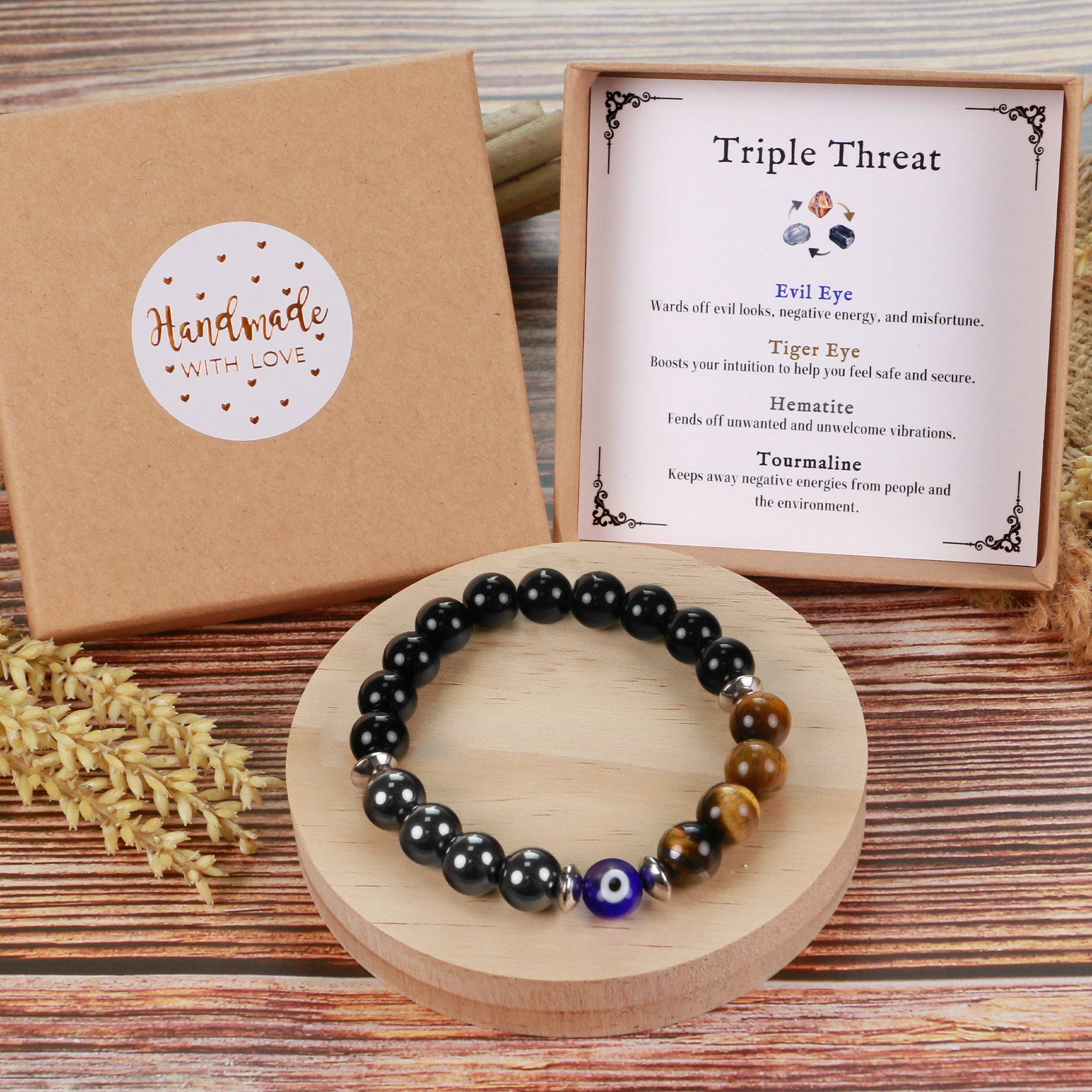 Materials: evil eye, tiger eye, hematite, and black tourmaline