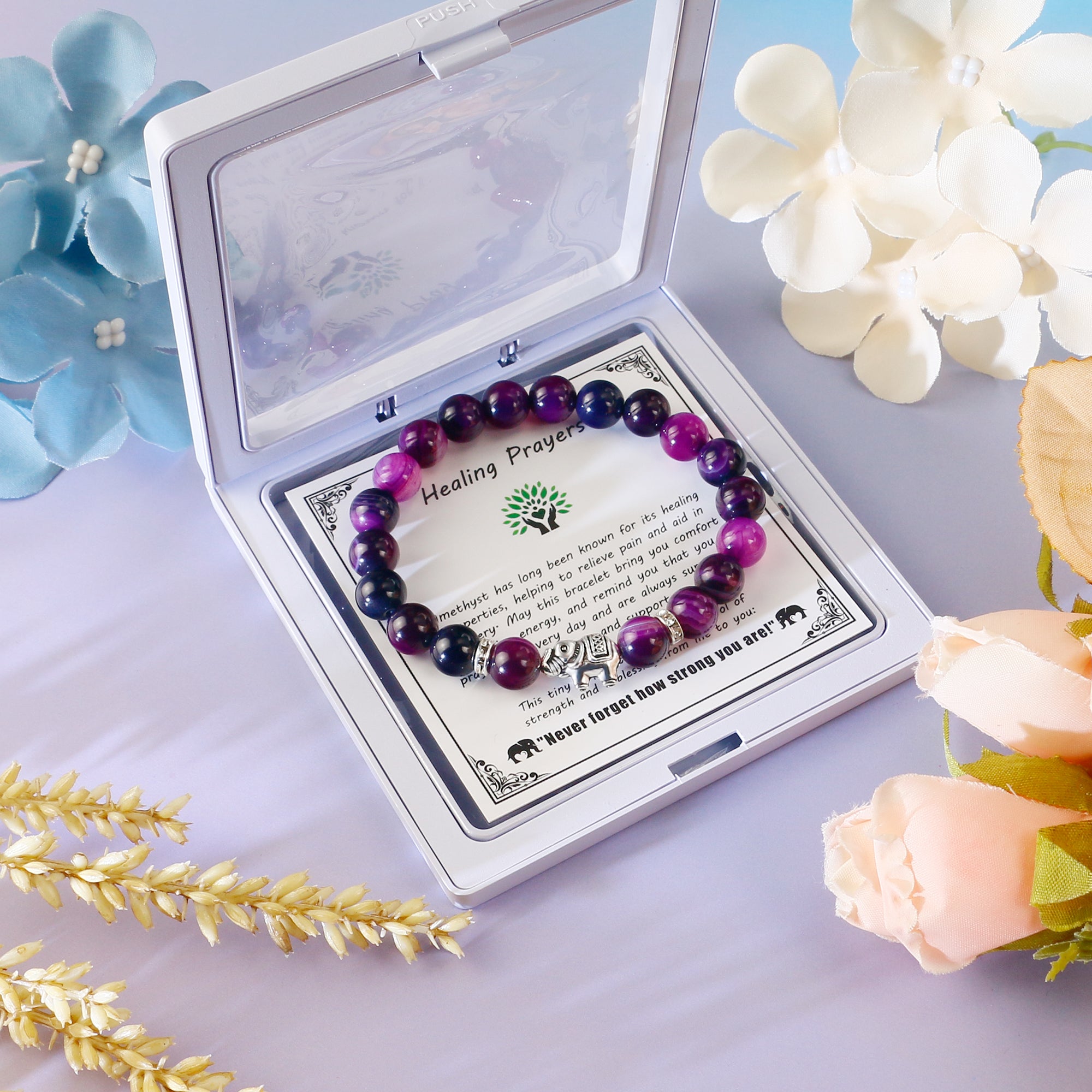 Amethyst has long been known for its healing properties, helping to relieve pain and aid in recovery. May this bracelet bring you comfort and healing energy, and remind you that you are prayed for every day and are always surrounded by love and support.