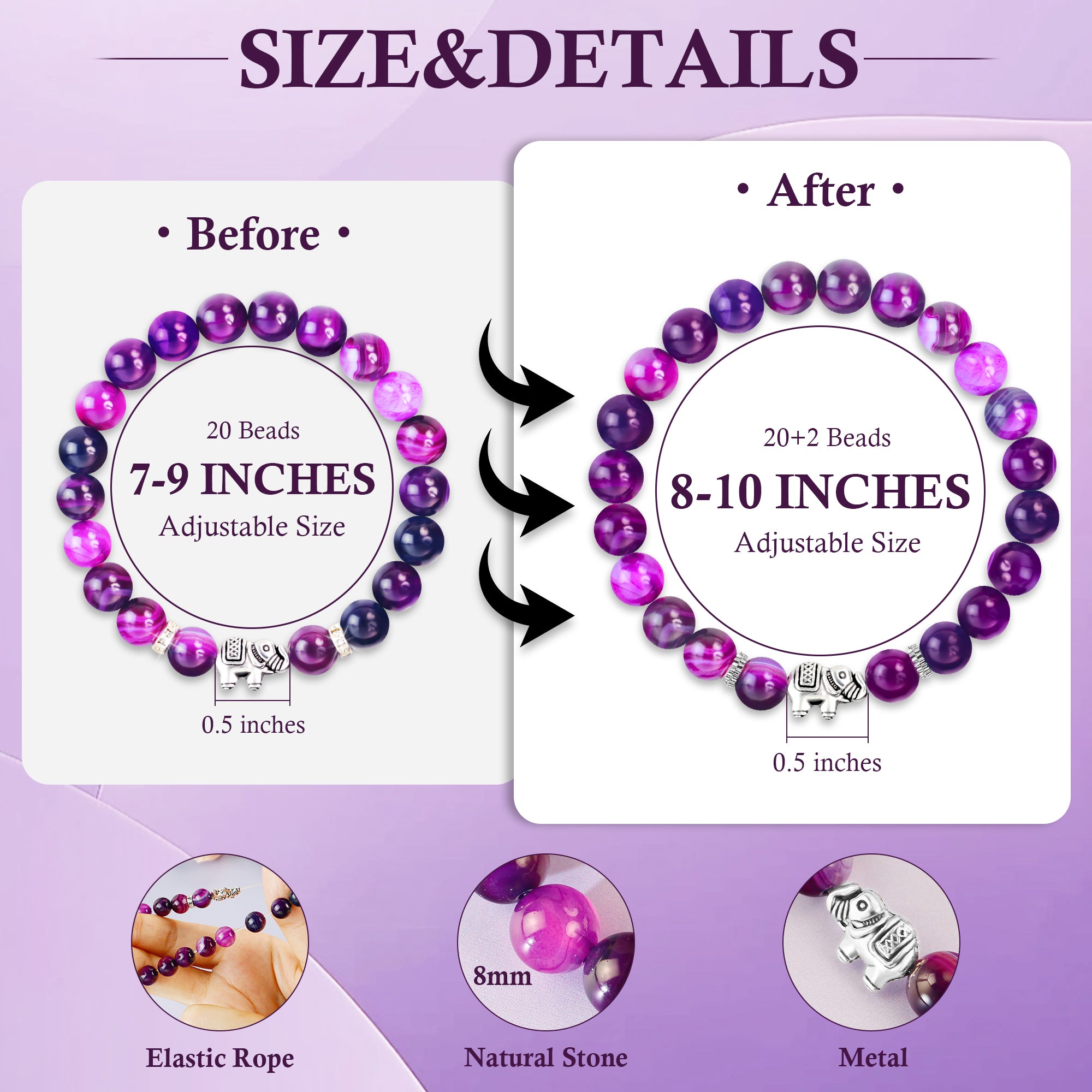Amethyst has the ability to heal and relieve people of their spiritual pain. Elephant charm is a symbol of strength and blessing from me to you.