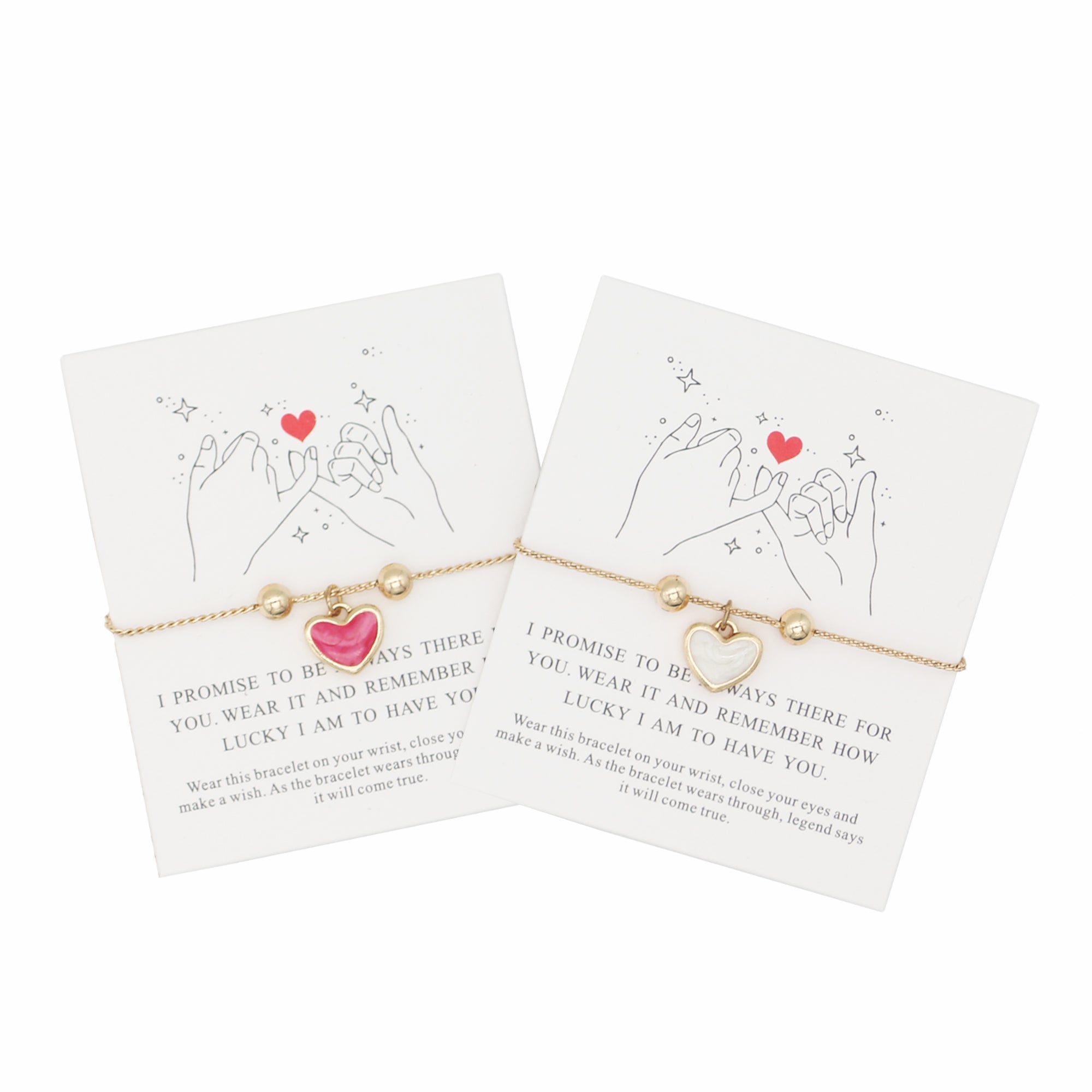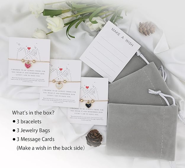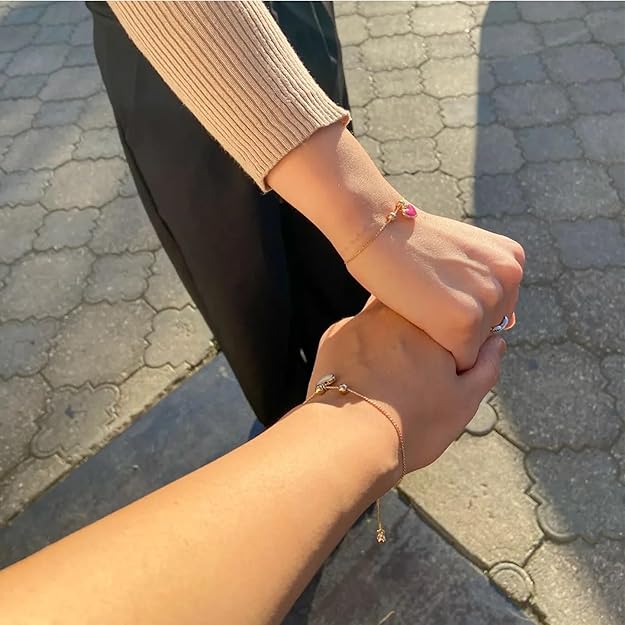 This red and white heart bracelet set let you and your best friend share a visible symbol of unbreakable bond. Though you may be apart sometimes, these matching pieces will remind you that your friendship remains forever close.